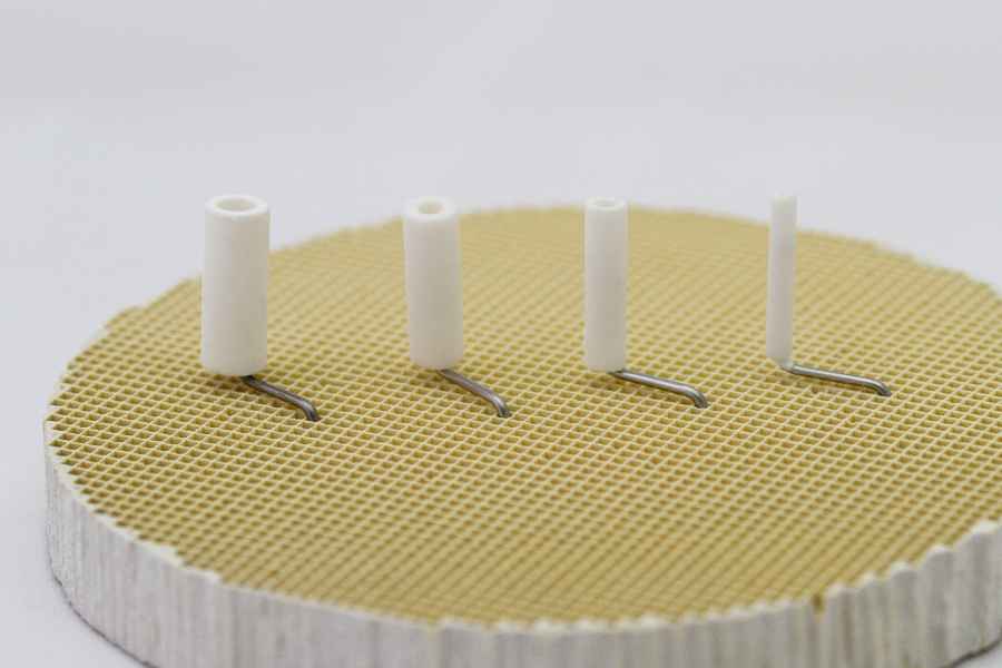 Unsere KEMA-Brenngut-Haltestifte-Serie besteht aus einer Kombination von Al2O3- bzw ZrO2-Röhrchen und HT-Draht;